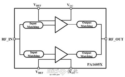 该器件是一款高功率,高增益, 高效率射频功率放大器芯片。 在连续波输入下, P1dB 输出功率大于38.2dBm。 芯片内置 50 Ohm 输入输出匹配电路 , 无需外部匹配元器件。 芯片内部继承了匹配电路, 拥有较低的插入损耗。 同时, 在匹配电路中加入谐波抑制电路,该电路在抑制谐波的同时, 还可以提高芯片的功率附加效率。